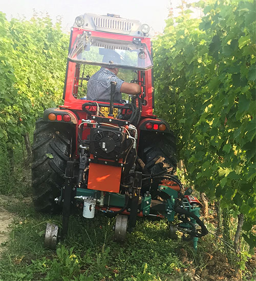 Мы разработали этот инструмент с целью предложить средние/низкие затраты, поскольку пользователь будет иметь в своем распоряжении два инструмента на одной раме, что позволит обрабатывать высокие стадии производственного цикла растений, бороться с сорняками под виноградными лозами, не прибегая к использованию химических средств, которые оказались крайне вредными для окружающей среды.