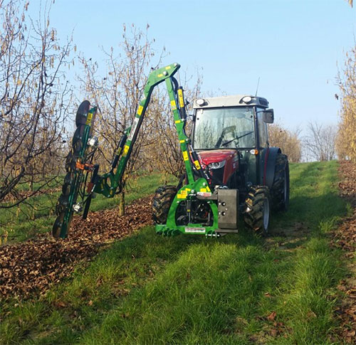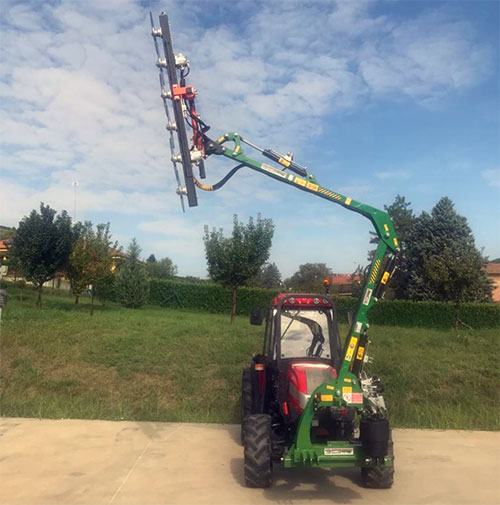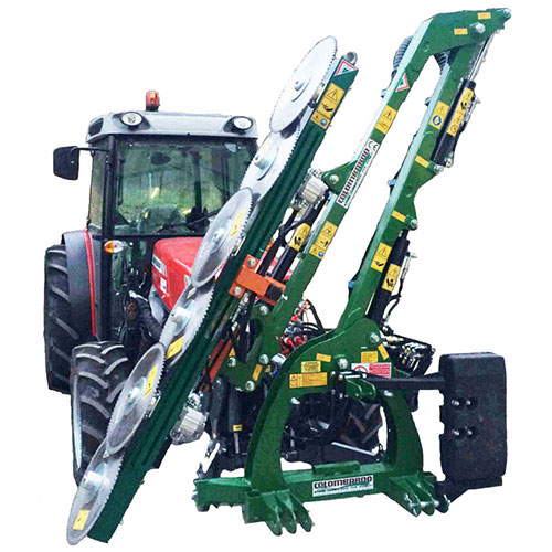 Обрезной инструмент, устанавливаемый на шарнирном механизме. Может располагаться в передней или задней части трактора с вращающимися дисковыми инструментами или специальными брусьями для обрезки плодовых растений. Подходит для обрезки декоративных живых изгородей всех видов, ежевики, кустарников и других крупных растений.